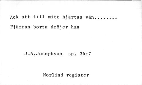 //// Ack att till mitt hjärtas vän //// Fjärran borta dröjer han //// J.A.Josephson sp. 36:7 //// Norlind register ////