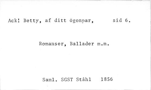 //// Ack! Betty, af ditt ögonpar, sid 6. //// Romanser, Ballader m.m. //// Sanl. SGST Stähl 1856 ////