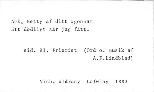 //// Ack, Betty af ditt ögonpar Ett dödligt sår jag fått. //// sid. 91. Frieriet (Ord o. musik af //// A.F.Lindblad) //// Visb. aldrany Löfwing 1883 ////