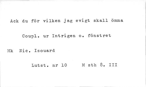 //// Ack du för vilken jag evigt skall ömma Coupl. ur Intrigen o. fönstret Mk Nic. Isouard //// Lutst. nr 10 M sth 8. III ////