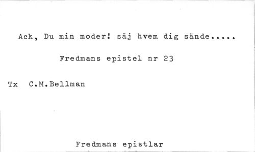 //// Ack, Du min moder! säj hvem dig sände //// Fredmans epistel nr 23 //// Tx C.M.Bellman //// Fredmans epistlar ////