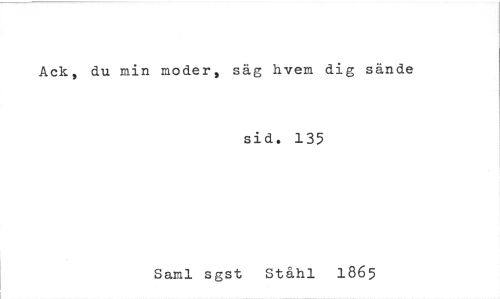 //// Ack, du min moder, säg hvem dig sände //// sid. 135 //// Saml sgst Ståhl 1865 ////