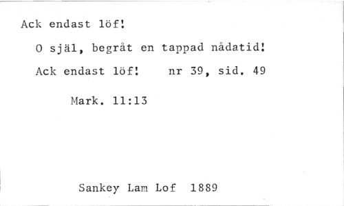 //// Ack endast löf: //// 0 själ, begråt en tappad nådatid! //// Ack endast löf! nr 39, sid. 49 //// Mark. 11:13 //// Sankey Lam Lof 1889 ////