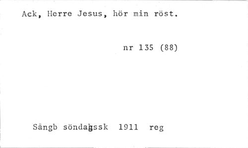 //// Ack, Herre Jesus, hör min röst. //// nr 135 (88) //// Sängb söndaåssk 1911 reg ////