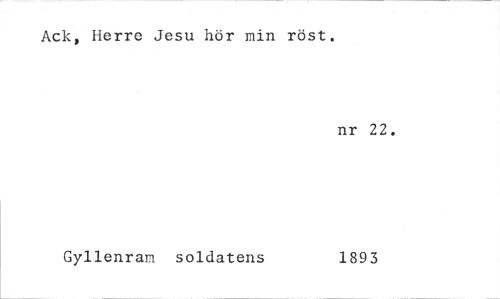 //// Ack, Herre Jesu hör min röst. //// nr 22. //// Gyllenram soldatens 1893 ////
