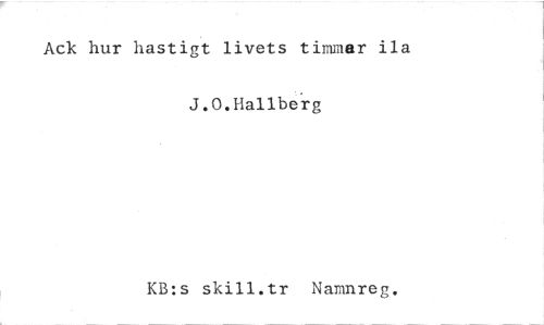 //// Ack hur hastigt livets timmar ila //// J.O.Hallberg //// KB:s skill.tr Namnreg. ////