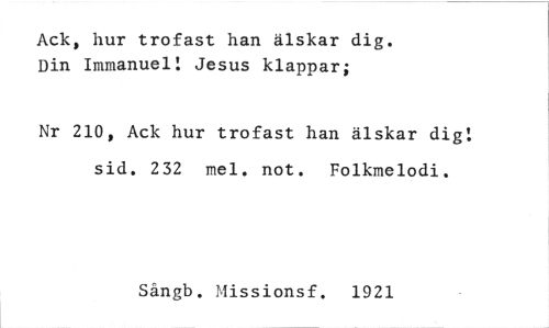 //// Ack, hur trofast han älskar dig. Din Immanuel! Jesus klappar; //// Nr 210, Ack hur trofast han älskar dig! sid. 232 mel. not. Folkmelodi. //// Sångb. Missionsf. 1921 ////