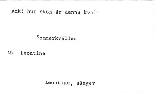 //// Ack: hur skön är denna kväll //// Sommarkvällen Mk Leontine //// Leontine, sånger ////