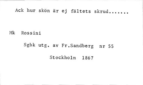 //// Ack hur skön är ej fältets skrud //// fik Rossini //// Sgbk utg. av Fr.Sandberg nr 55 Stockholm 1867 ////