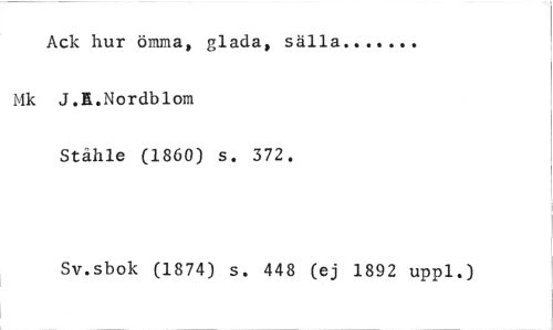 //// Ack hur ömma, glada, sälla //// Mk J.R.Nordblom //// Ståhle (1860) s. 372. //// Sv.sbok (1874) s. 448 (ej 1892 uppl.) ////