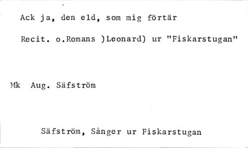 //// Ack ja, den eld, som mig förtär //// Recit. o.Romans )Leonard) ur "Fiskarstugan" //// Mk Aug. Säfström //// Säfström, Sånger ur Fiskarstugan ////
