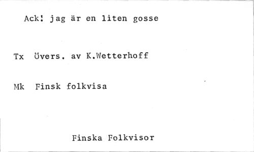 //// Ack! jag är en liten gosse //// Tx Övers. av K.Wetterhoff //// Mk Finsk folkvisa //// Finska Folkvisor ////