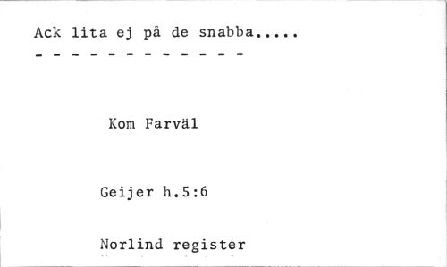 //// Ack lita ej på de snabba //// Kom Farväl //// Geijer h.5:6 //// Norlind register ////