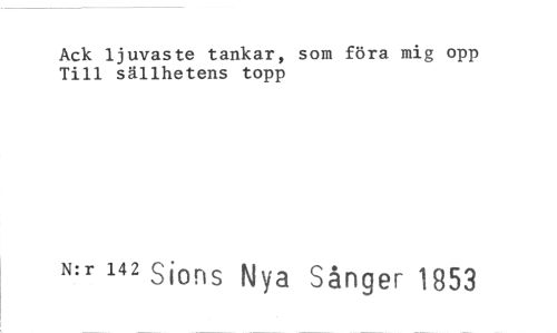 //// Ack ljuvaste tankar, som föra mig opp Till sällhetens topp //// N:r 142 Sions Nya Sånger 1853 ////