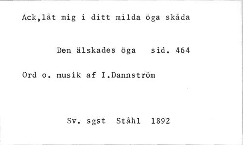 //// Ack,lät mig i ditt milda öga skåda //// Den älskades öga sid. 464 //// Ord o. musik af I.Dannström //// Sv. sgst Ståhl 1892 ////