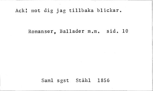 //// Ack: mot dig jag tillbaka blickar. //// Romanser, Ballader m.m. sid. 10 //// Saml sgst Ståhl 1856 ////