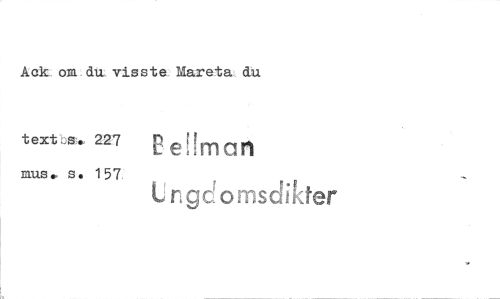 //// Aek om du, visste Mareta du //// textbte, 227 e!!man //// mus. s • 157 ungdomsdikter ////