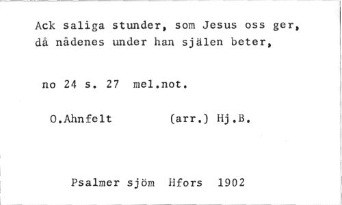 //// Ack saliga stunder, som Jesus oss ger, då nådenes under han själen beter, //// no 24 s. 27 mel.not. //// O.Ahnfelt (arr.) Hj.13. //// Psalmer sjön] Hfors 1902 ////