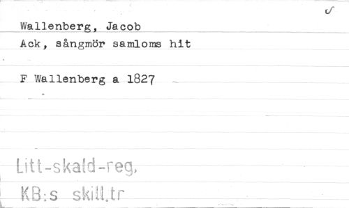 //// Wallenberg, Jacob //// Ack, sångmör samloms hit //// F Wallenberg a 1827 //// Lett-skald req, //// _KB:s ////
