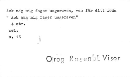 //// Kok säg mig fager ungersven, vem får ditt röda //// " Ack säg mig fager ungersven" //// 4 str. //// mel. //// s4 16 //// r f• //// R //// Olrog visor ////