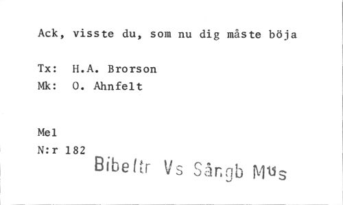 //// Ack, visste du, som nu dig måste böja //// Tx: H.A. Brorson Mk: 0. Ahnfelt //// Mel //// N:r 182 //// Bibeltr Sångb ////