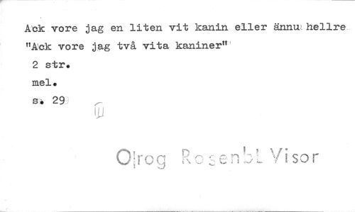//// Ark vore jag en liten vit kanin eller ännu hellre //// "Aok vore jag två vita kaniner" //// 2 str. //// mel. //// sä 29 //// GrOn ••b. LY i so //// J ////