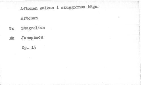 //// Aftonen nalkas i skuggornas hägn: //// Aftonen //// Tx Stagnelius //// Ek Josephson //// Op• 15 ////