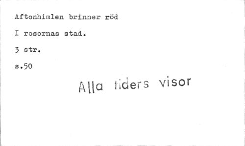 //// Aftonhimlen brinner röd I rosornas stad. //// 3 str. //// s.50 //// Alla 1;ciers visor ////