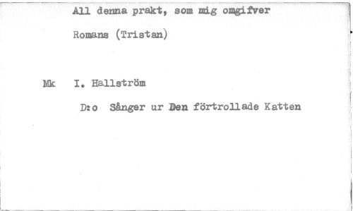 //// All denna prakt, som mig onipittrer Romans (Tristan) //// fik I. Hallström //// D:o Sånger ur Den förtrollade Katten ////