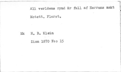 //// AU. verldens rymd är tall af Herrans makt Motett. Fleret, //// ?fik H. B. Klein Zion 1870 Nto 15 ////