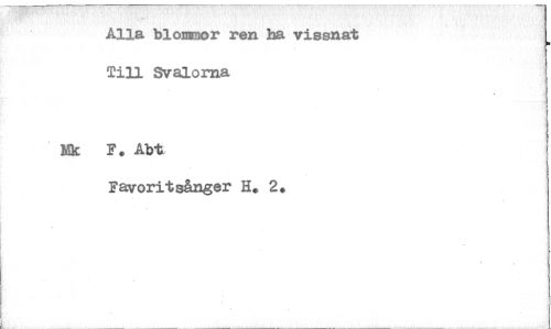 //// Alla blommor ren ha vissnat Till. Svalorna //// Mk F,Abt //// Favoritsånger H. 2. ////