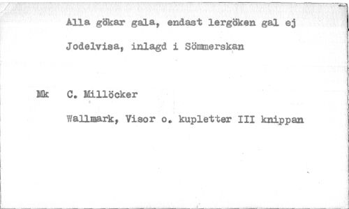 //// Alla gökar gala, endast lergöken gal ej Jodelvisa, inlagd i Sömmerskan //// Mk C. Millöcker //// Wallaark, Visor o. kupletter III knippan ////