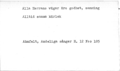 //// Alla Herrans vägar äro godhet, sanning Alltid samma kärlek //// Alanfelt, Andeliga sånger H. 12 N:o 185 ////