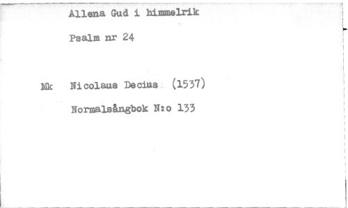 //// Allena Gud i himealrik Psalm nr 24 //// Ek Nicolaus Decius (1537) Normalsångbok N:o 133 ////