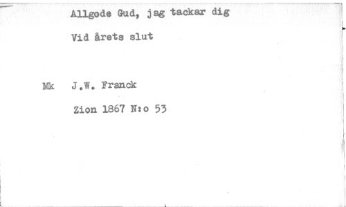 //// Allgode Gud, jag tackar dig Vid årets slut //// Nk J.W. Fransk //// Zion 1867 N:o 53 ////