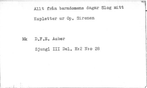 //// Allt från barndomens dagar Slog mitt Kupletter ur Op. Sirenen //// Nk D.F.B. Auber //// Sjung: III Del. H:2 Nto 28 ////