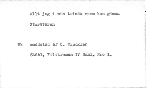 //// Allt jag i min trinda votum kan gömma Storätaren //// Mk meddelad af C. Winokler //// Ståhl, Filikromen IV Saml, N:o 1, ////