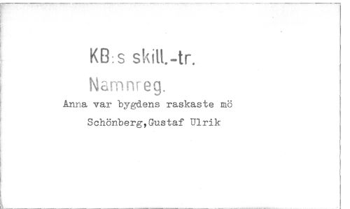 //// KB:s drill.-tr. //// Namnreg. //// Anna var bygdens raskaste mö Schönberg,Gustaf Ulrik ////
