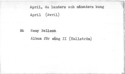 //// April, du lunders och månaders kung April (Avril) //// Nk Remy Belleua //// Album för sång II (Hallström) ////