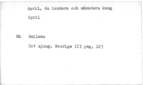 //// April, du lureders och månaders kung April //// Ifk Belleau //// Det sjung. Sverige III pag. 123 ////