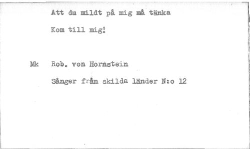 //// Att du mildt på mig må tänka Kom till mig! //// Mk Rob. von Hornstein //// Sånger från skilda länder N:o 12 ////