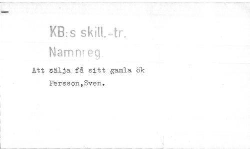 //// KB:s //// Namnreg //// Att sälja få sitt gamla ök Persson, Sven. ////