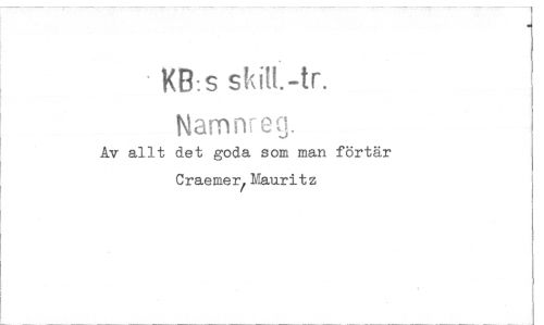 //// KB:s skal-tr. //// Narnweg. //// Av allt det goda som man förtär CraemerMauritz ////