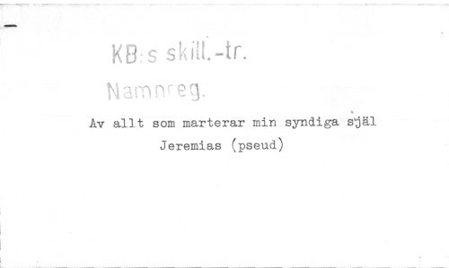 //// KE3:s ski[1.-tr. //// rf1 r //// Av allt som marterar min syndiga själ Jeremias (pseud) ////