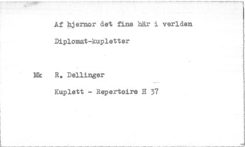 //// Af hjernor det fins här i verlden Diplomat-kupletter //// Nk R. Delfinger //// Kuplett - Repertoire H 37 ////