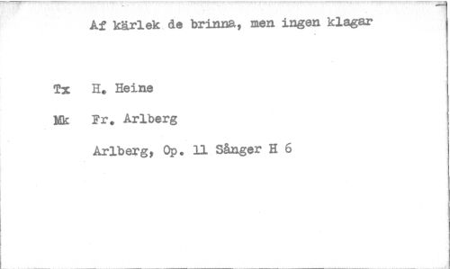 //// Åt kärlek de brinna, men ingen klagar //// Tm H. Heine //// Nk Fr, Arlberg //// Arlberg, Op. 11 Sånger H 6 ////