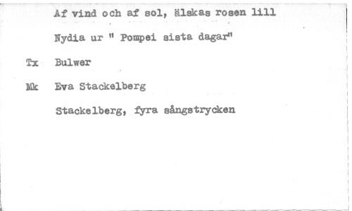 //// Af vind och af sol, älskas rosen lill //// Nydia ur " Pompei sista dagar" //// Tx Buiwer //// bils Eva Stackelberg //// Stackelbergt fyra sångstrycken ////