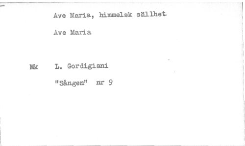 //// Ave Maria, himmelsk sällhet. Ave Maria //// Mk L. Gordigiani //// Sången" nr 9 ////