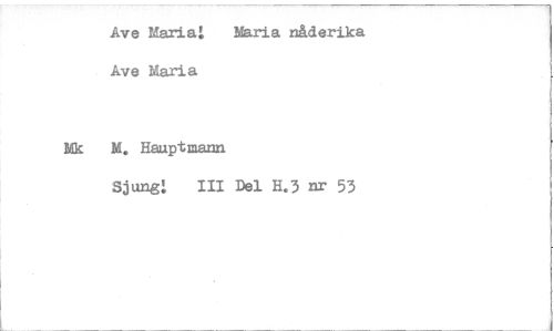 //// Ave Maria: Maria nåderika Ave Maria //// Mk M. Hauptmann //// Sjung; III Del H.3 nr 53 ////