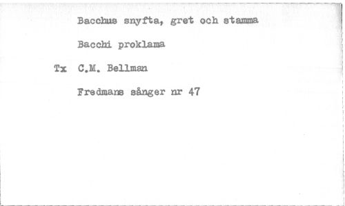 //// Bacchus snyfta, gret och stamma Bacchi proklama //// Tx C.M. Bellman //// Fredmans sånger nr 47 ////